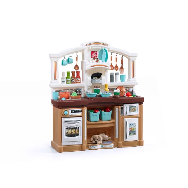 Step2 Legekøkkenet har et eksklusivt design, der matcher nutidens boligindretning. Dette store, holdbare køkken vil give år af fantasifuld leg til ethvert hjem! Flere børn kan lege de store bordplader med granitudseende samtidig.Realistisk elektronisk kom (Læs mere)